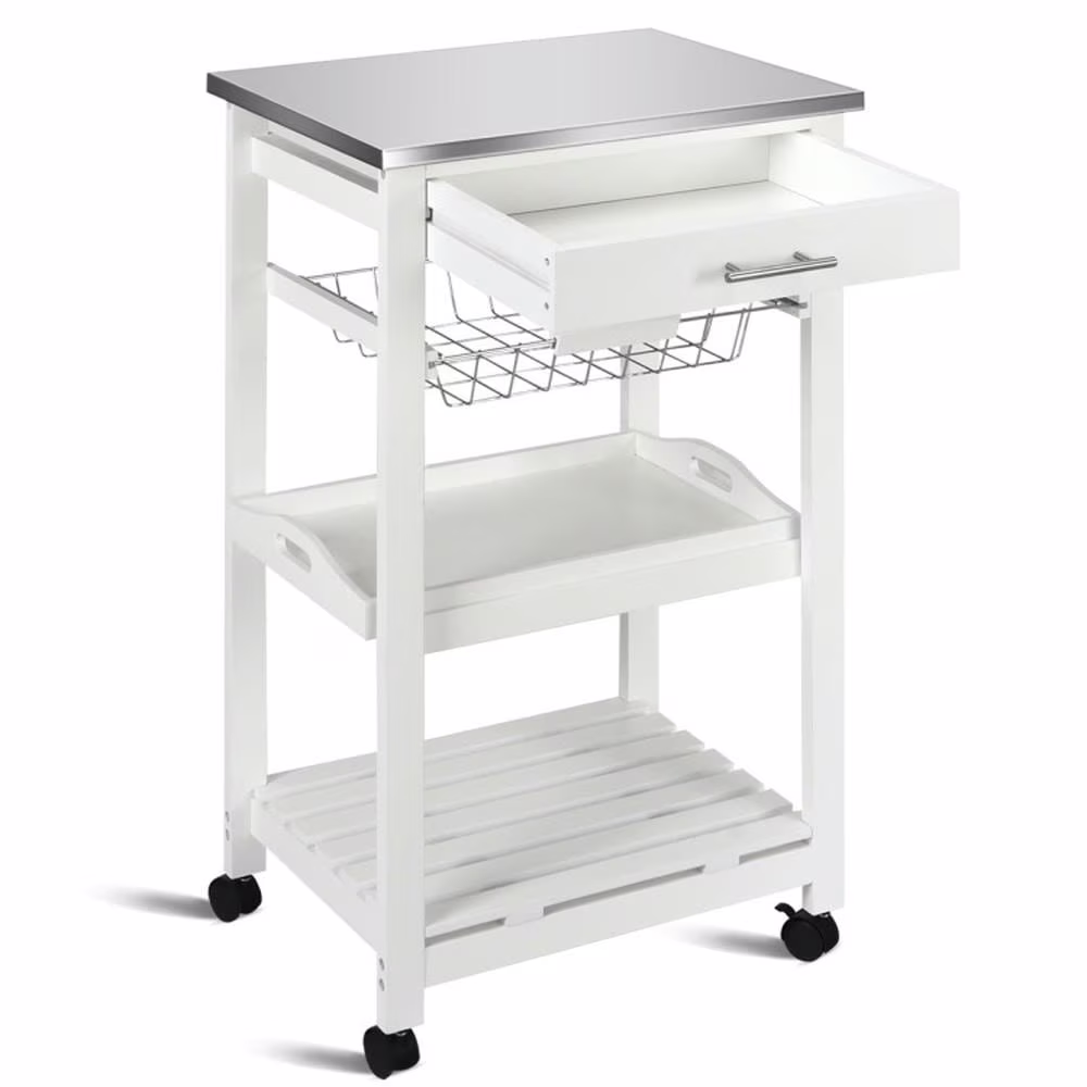 Topcobe Kitchen Island Cart with Stainless Steel Tabletop and Basket, Portable Kitchen Island, Kitchen Carts on Wheels, White