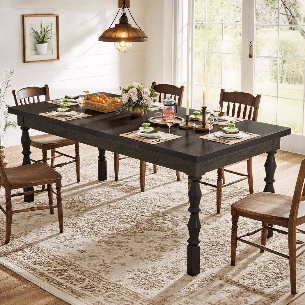 Fnova 62" Farmhouse Dining Table for 4-6 People, Large Wood Rectangle Kitchen Table Modern Dining Room Furniture with Carved Turned Legs
