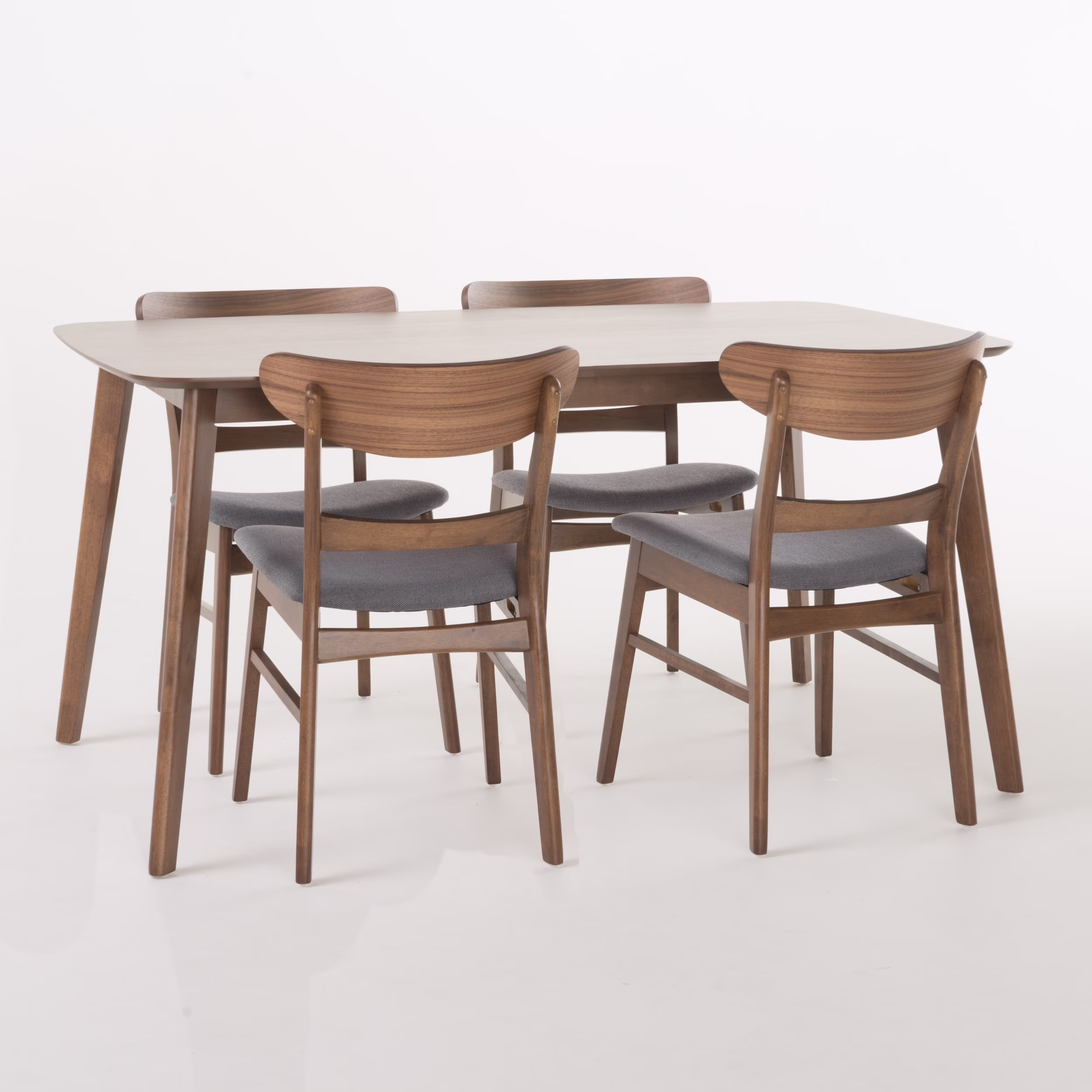 GDF Studio Kloss Indoor Mid-Century Modern 5 Piece Dining Set, Dark Gray and Natural Walnut