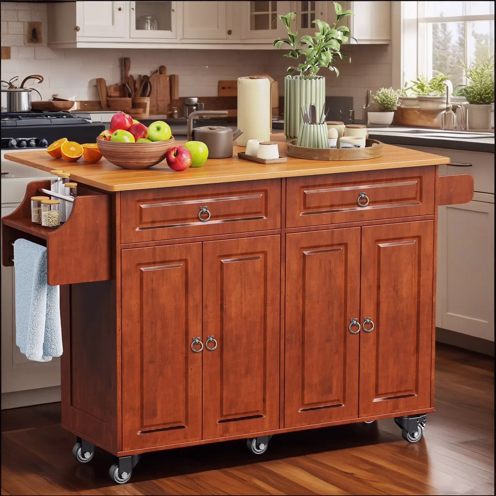 Kitchen Island with Storage, Lofka 52" Kitchen Islands Cart with Wood Drop Leaf and Lockable Wheels, Brown