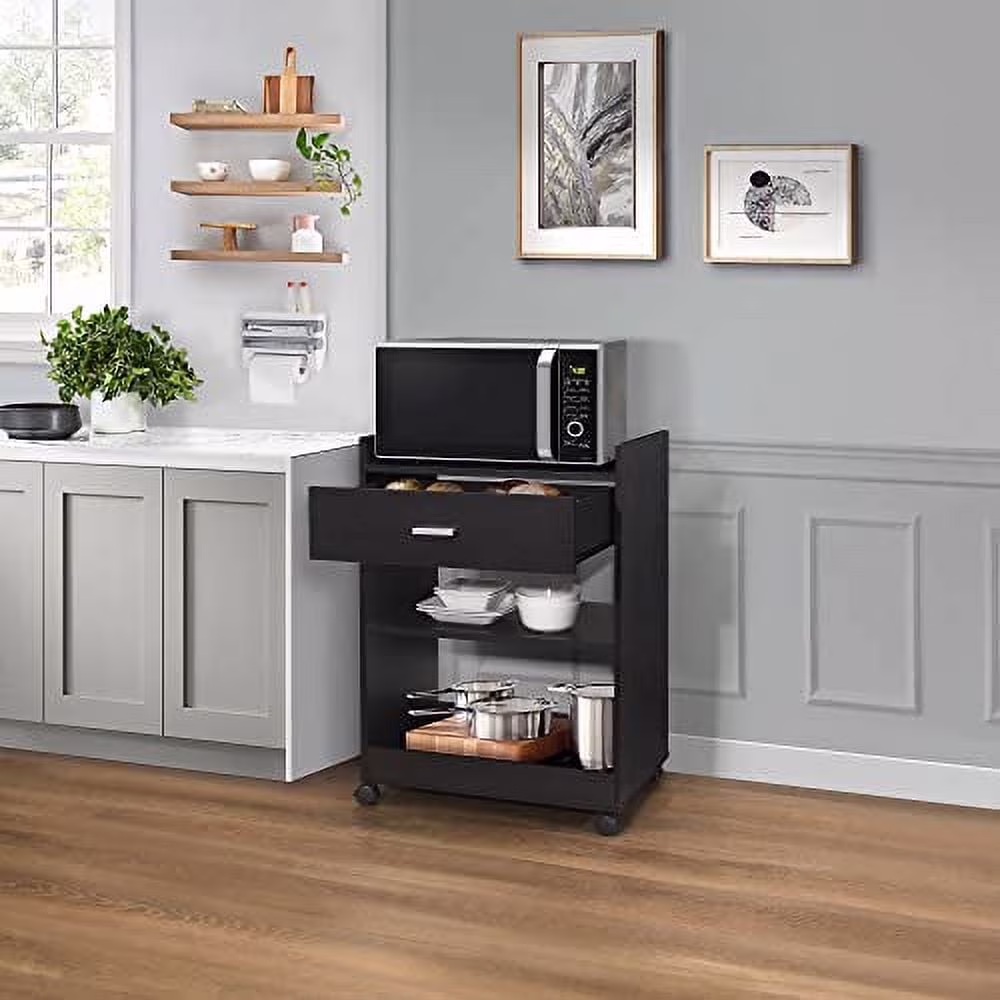 Kings Brand Furniture Dellow Kitchen Island Cart �?Black Microwave Serving & Storage Cabinet with Drawer & Shelves