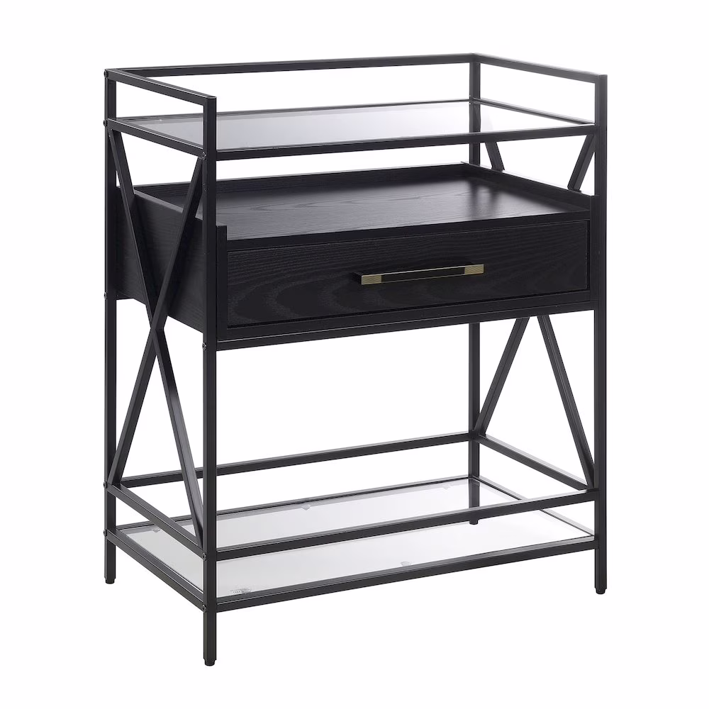 Conveniece Concepts Glenview Serving Bar in Black Wood Finish and Black Metal