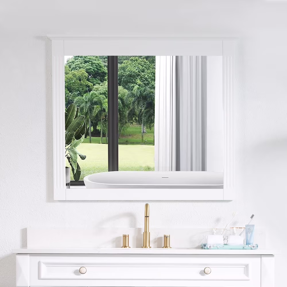 Forclover 38" x 33" Rectangle Wall-Mounted Wooden Framed Vanity Mirror, Makeup Bathroom Wall Mirror for Bathroom Living Room Entryway, White