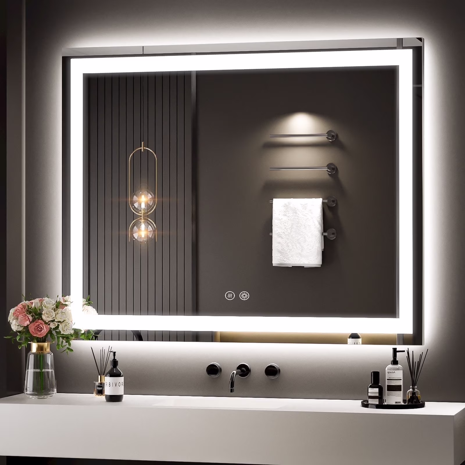 JSneijder 40x32 inch LED Bathroom Mirror, Wall Mounted Frameless Lighted Bathroom Mirror, Dimmable, Anti-Fog, Horizontal/Vertical