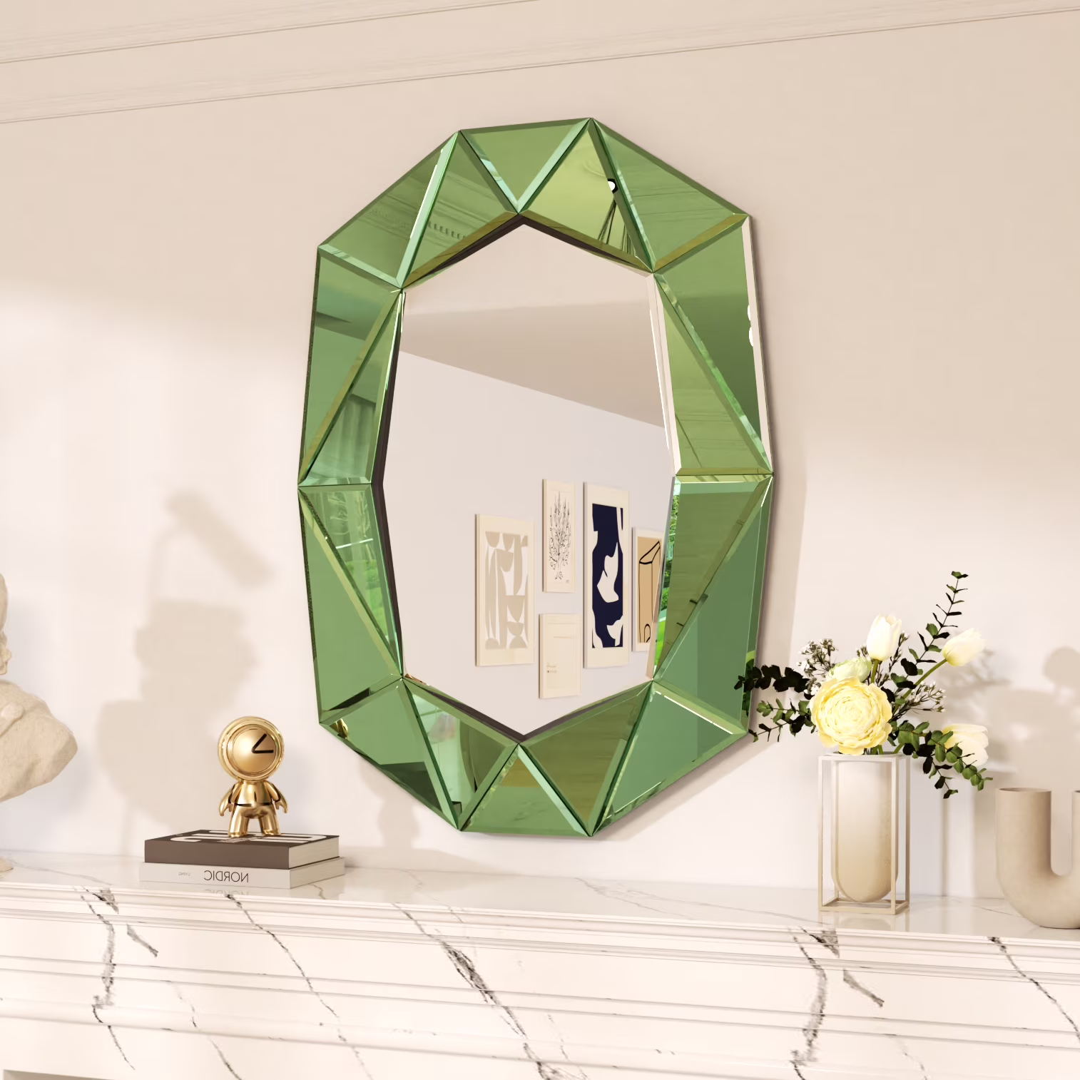 LUVODI Geometric Mirror Wall 28 x 39 inch Art Mirror Green 3D Glass Beveled for Bathroom Living Room