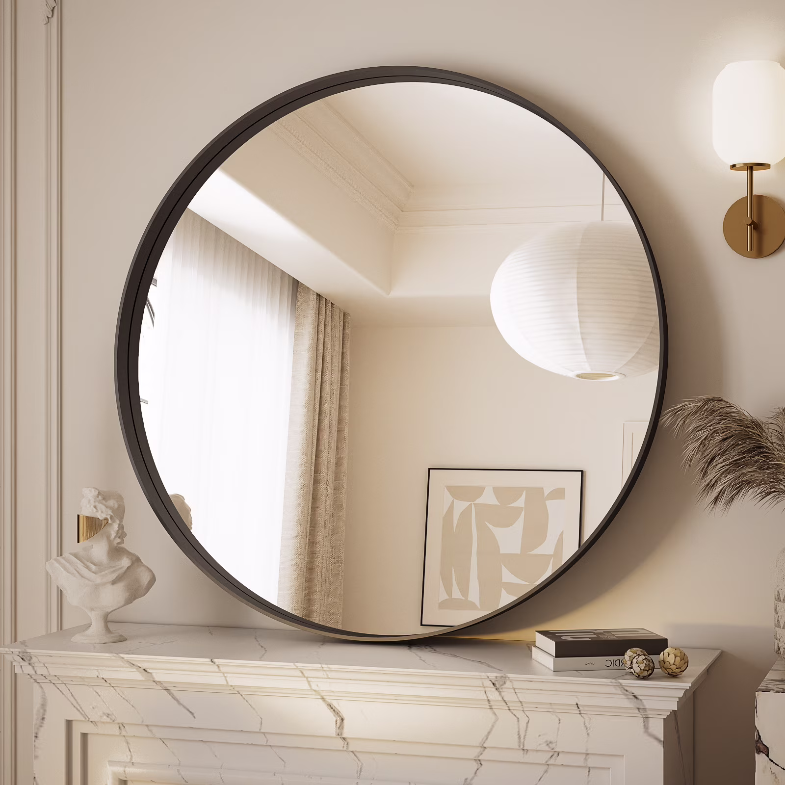 GRAHMCY 30" Bathroom Round Mirror With Deep Frame Wall Decor, Black