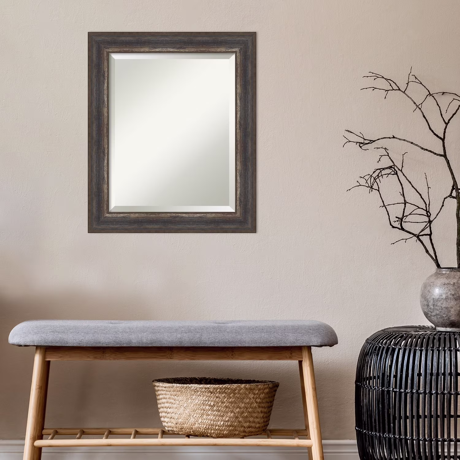 Amanti Art Beveled Bathroom Wall Mirror - Alta Frame Alta Rustic Char Outer Size: 21 x 25 in