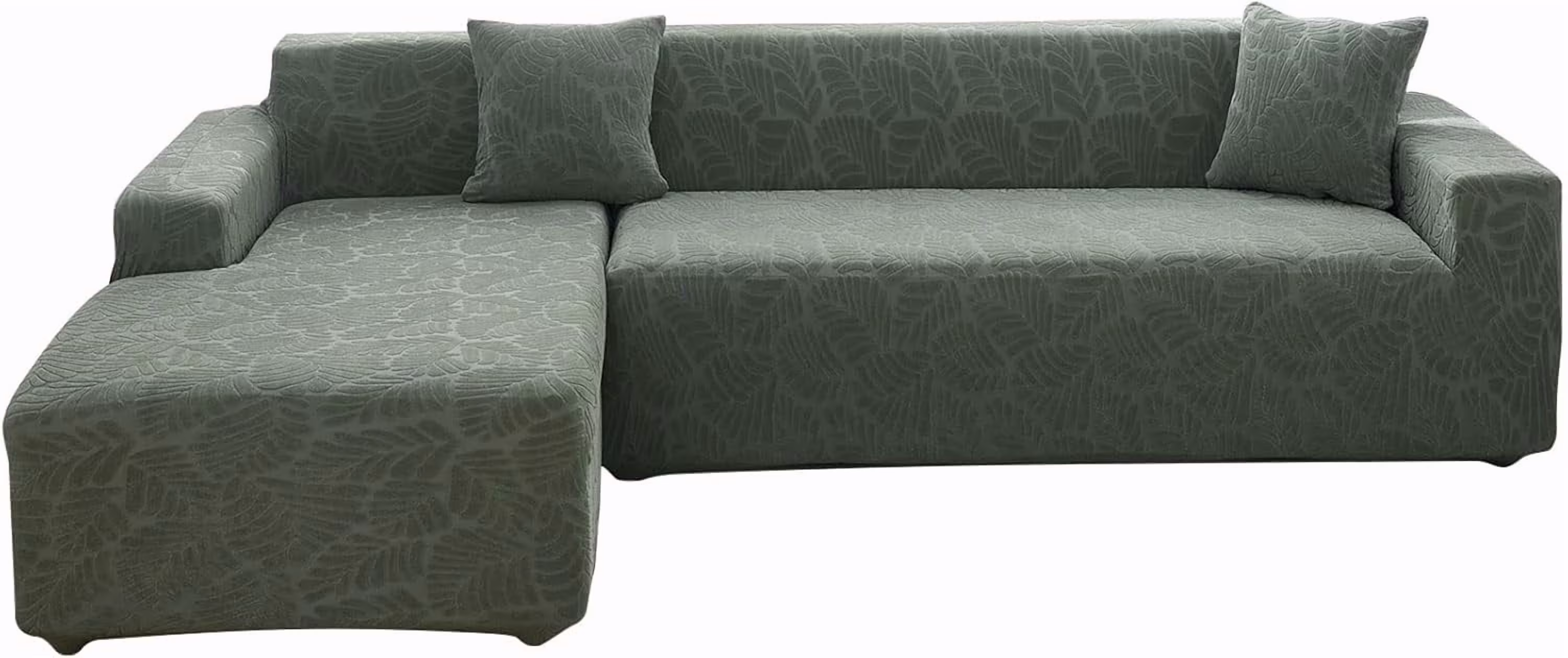 OKYUK L-Shape Sectional Couch Slipcover, 2 Pcs 3+3 Seats Printed High Stretch Sofa Covers + 2 Free Pillow Covers, Elastic L-Type Furniture Protector for Living Room Kids Pets (Printed, Green)