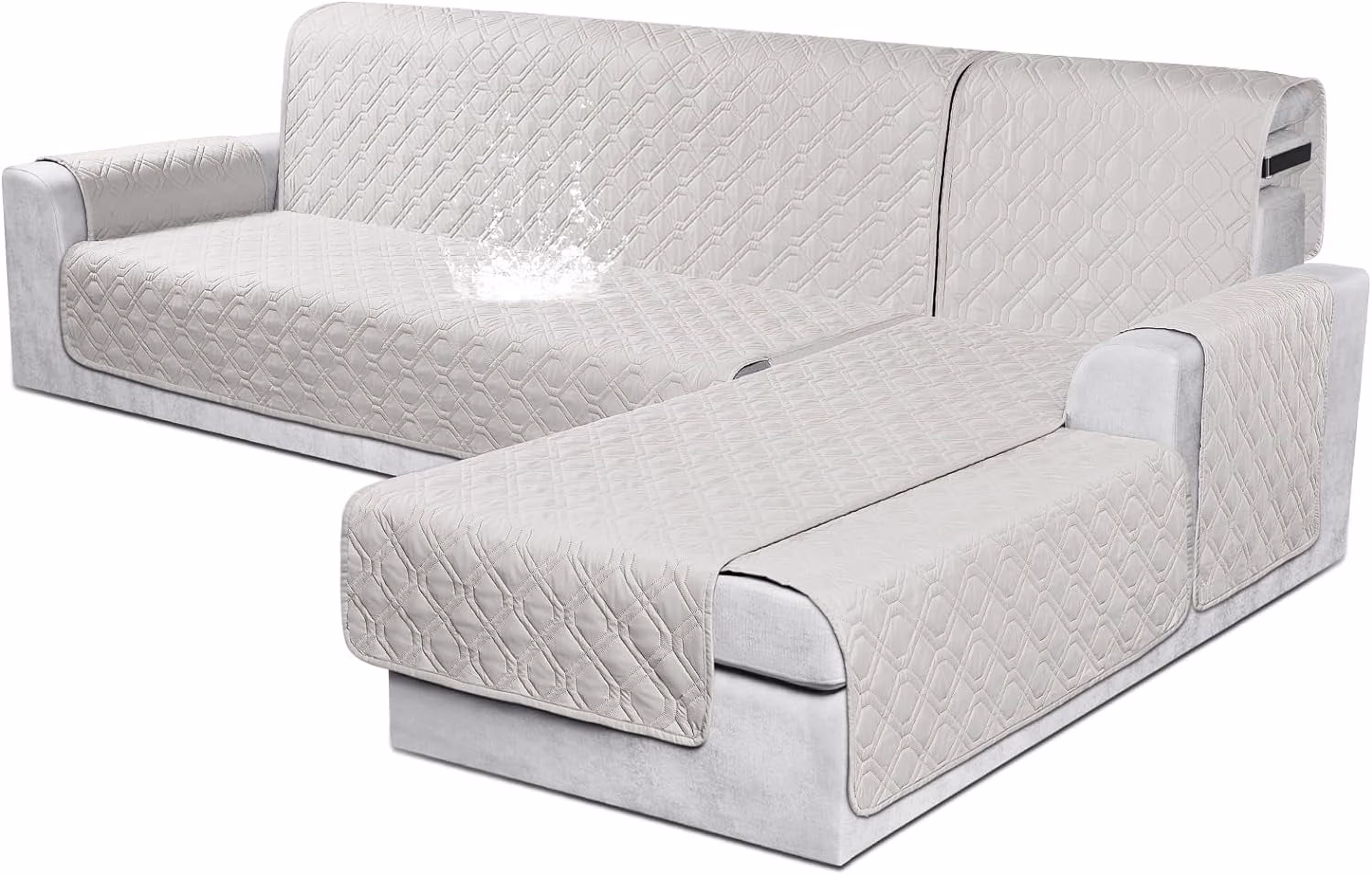 Sectional Couch Covers 100% Waterproof L Shaped Sofa Slipcover 3pcs Reversible Chaise Lounge Cover for Sectional Sofa Furniture Protector Cover for Pets Dog Cat(Large, Off White)