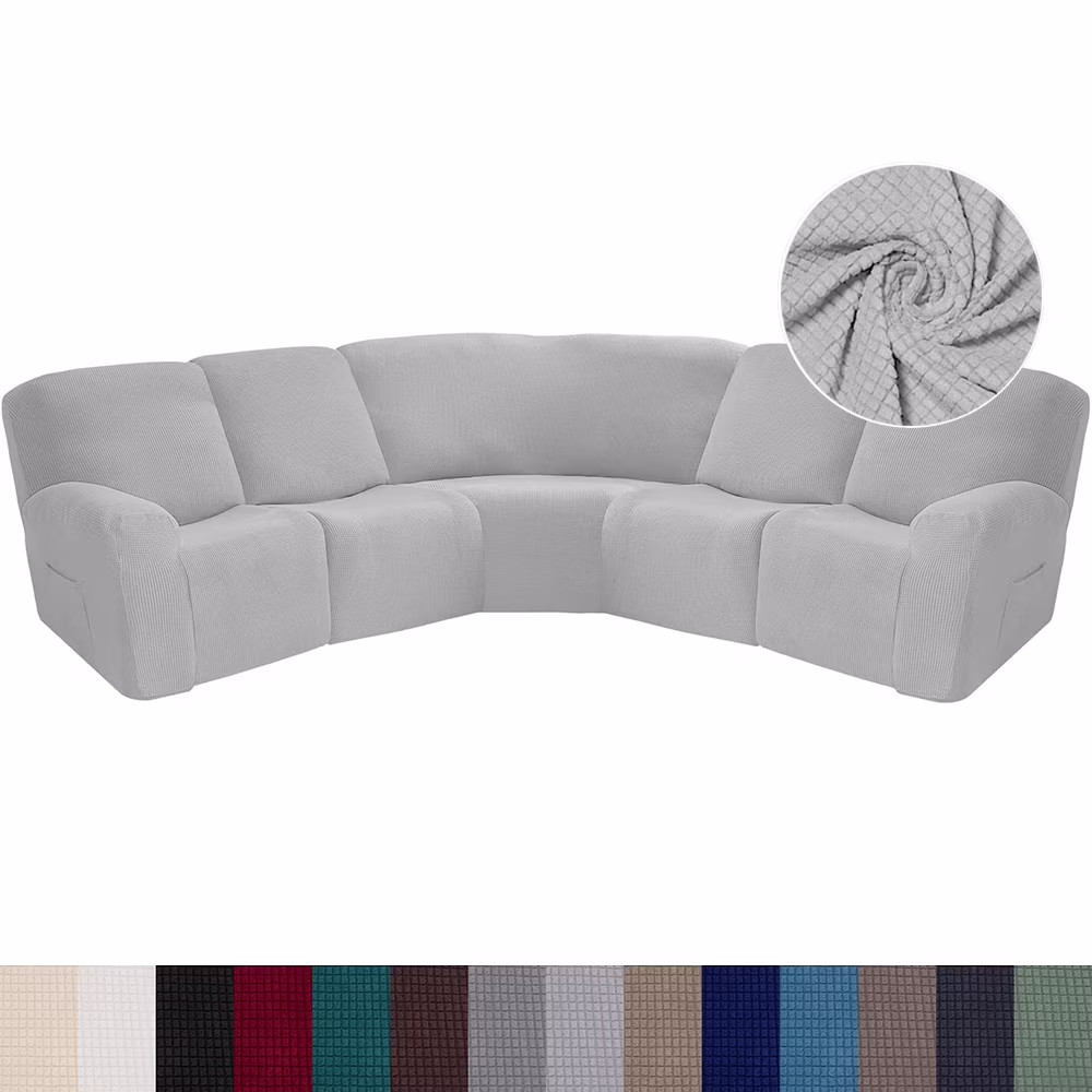 TOPCHANCES Stretch 7-Piece Velvet Sofa Sectional Slipcover, Light Gray