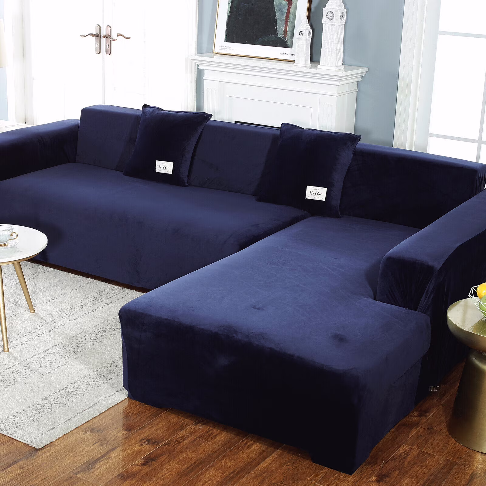 TOPCHANCES L Shape Couch Covers, Soft Velvet Sectional Sofa Cover, Stretch Furniture Protector Couch Slipcover for L Shape(3 Seater+4 Seater), Navy Blue