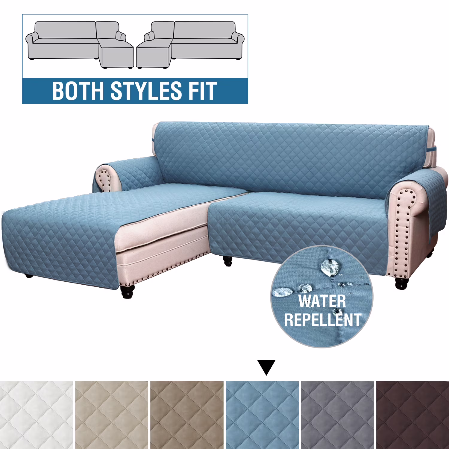 HDCAXKJ 100% Waterproof Sectional Corner Sofa Covers Quilted Couch Covers Non Slip L Shape Sofa Slipcovers with Pockets Furniture Protector for Pets Kids,XX-Large,Beige