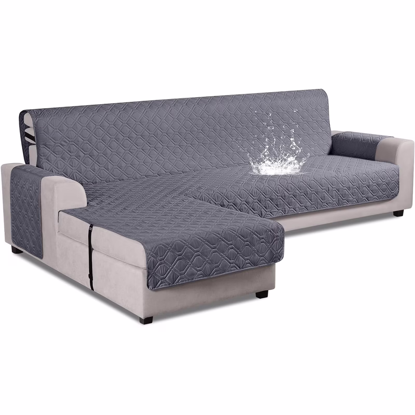 LAPAMAX 100% Waterproof Sectional Couch Cover Quilted Slipcover L-Shape Sofa Cover Reversible Furniture Protector for Dogs, Children, Pets