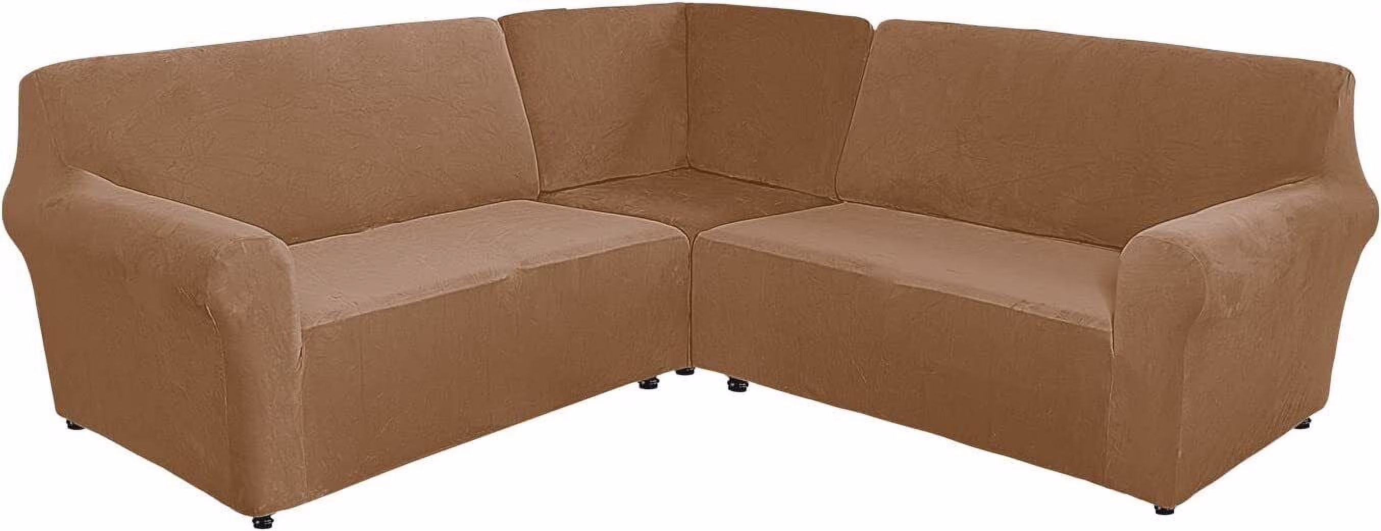 TOPCHANCES 3-Piece Velvet Recliner Sofa Covers, 7 Seat L-Shaped Corner Sofa Covers, Stretch Sectional Couch Slipcover ( Leather Brown )