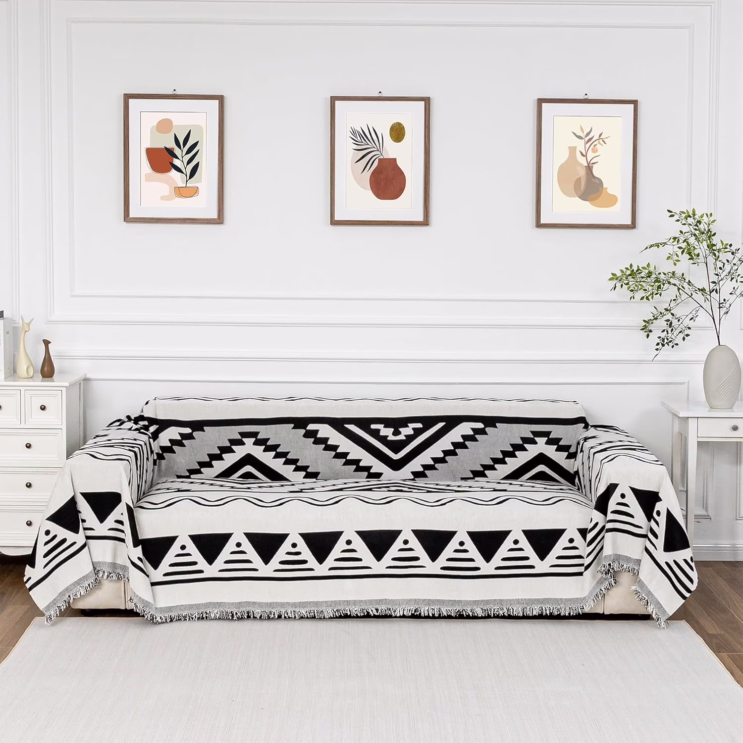HOME Sectional Couch Cover Black Boho Geometric Sofa Covers for Sectional Sofa L Shape Chenille Couch Protector for Dogs Pets Couch Throw Cover Washable Durable for Home Decor, 71" X118"