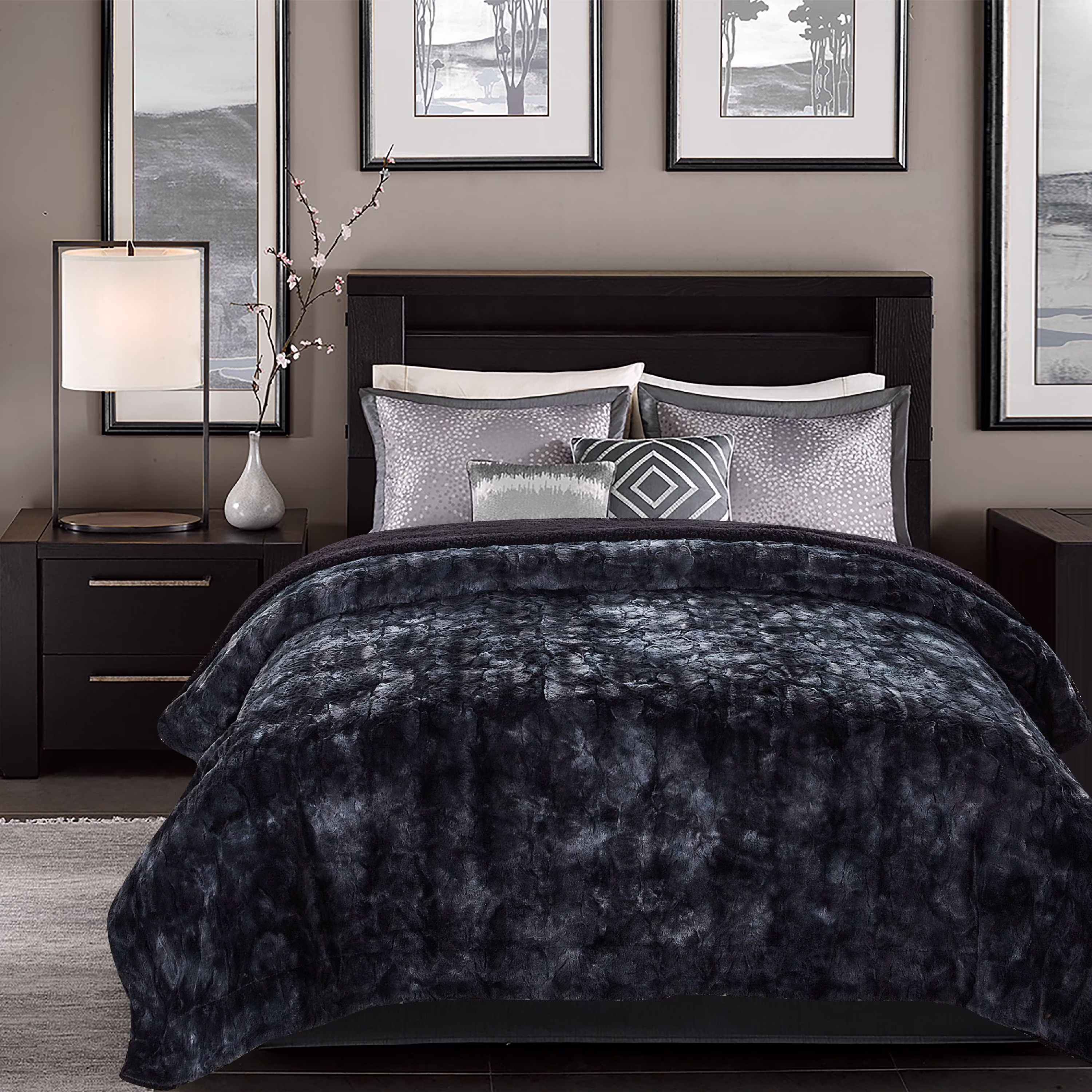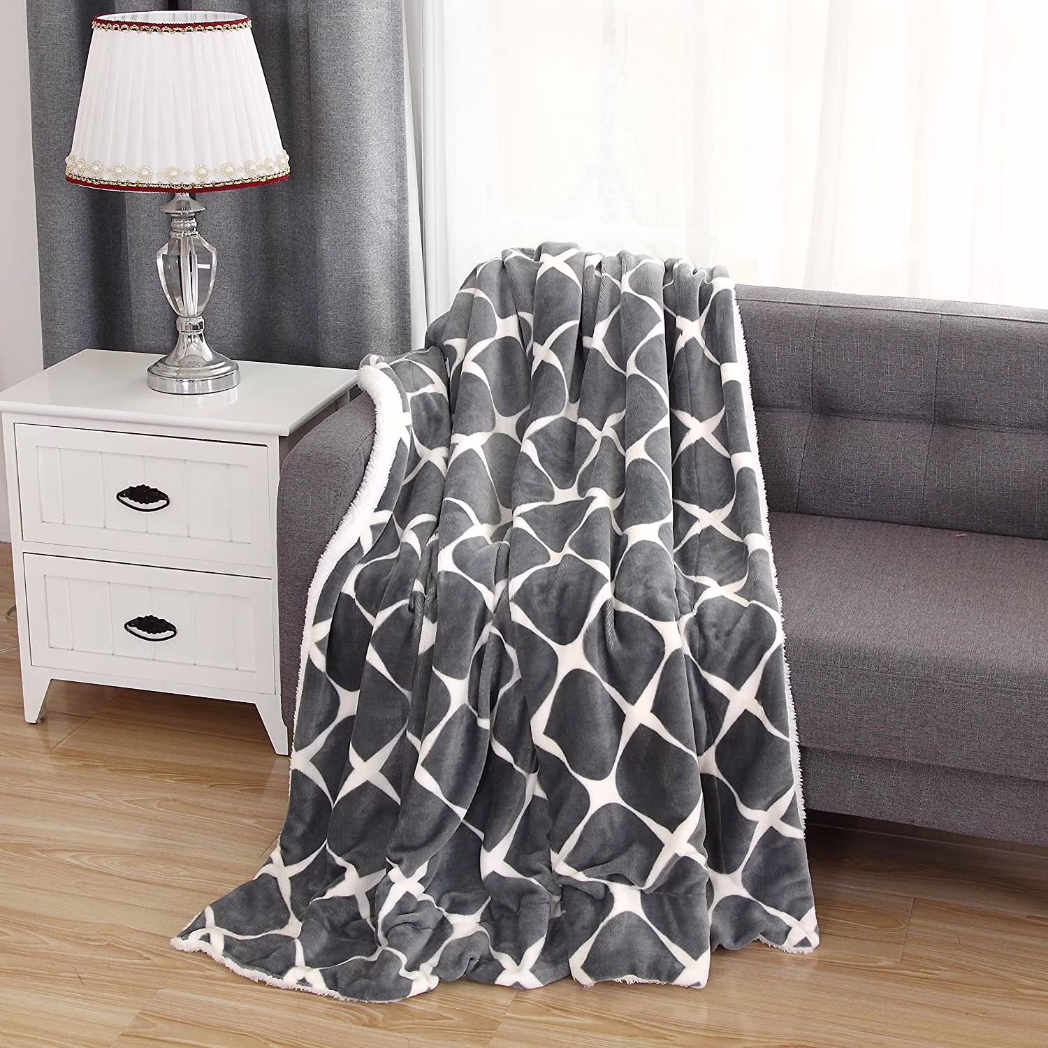 Mocassi Reversible Printed Sherpa All-Season Blanket Perfect for Lounging 50 x 60 inches Bloomingdale Sherpa Throw Silver Grey