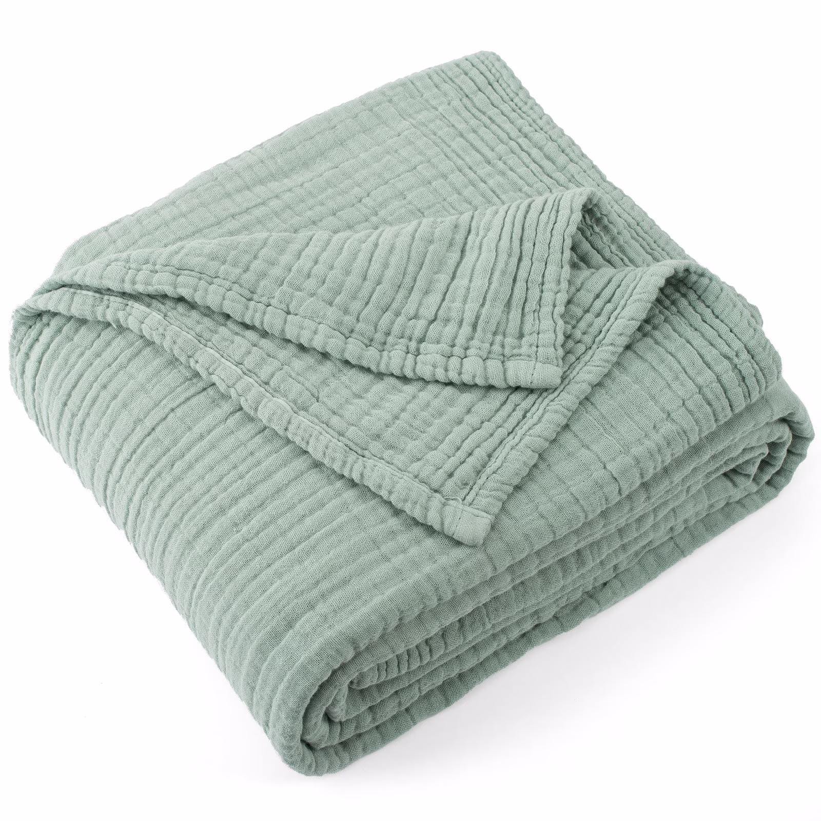 Carriediosa 100% Cotton Muslin Throw Blanket Gauze Blankets for Adults Soft Throws for Bed and Couch, 50" x 70" Sage Green