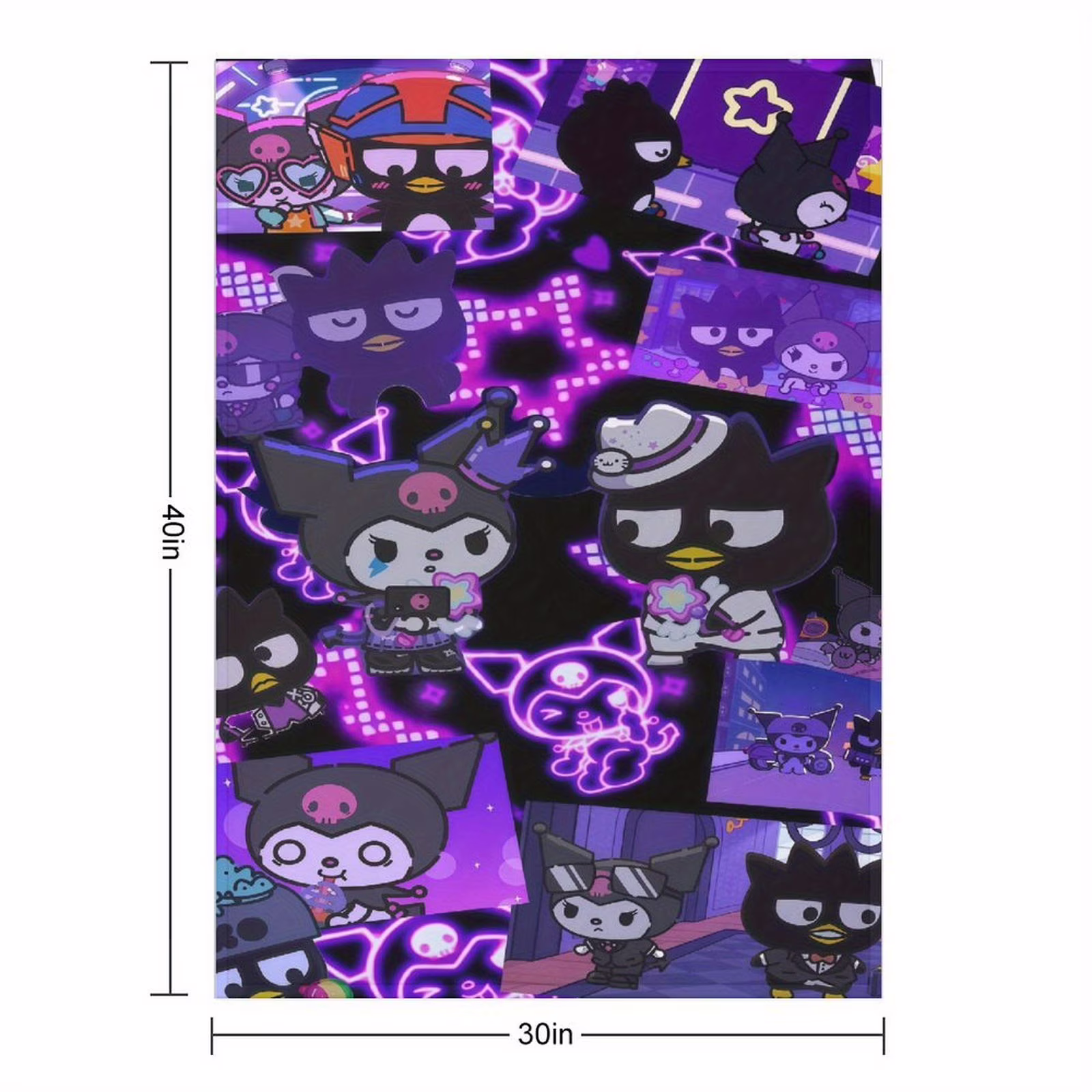 Sanrio Kuromi & Badtz-Maru Flannel Throw Blanket Vibrant cartoon character design, a comfortable blanket for all seasons, perfect for office naps, home sofas, beds - Machine washable